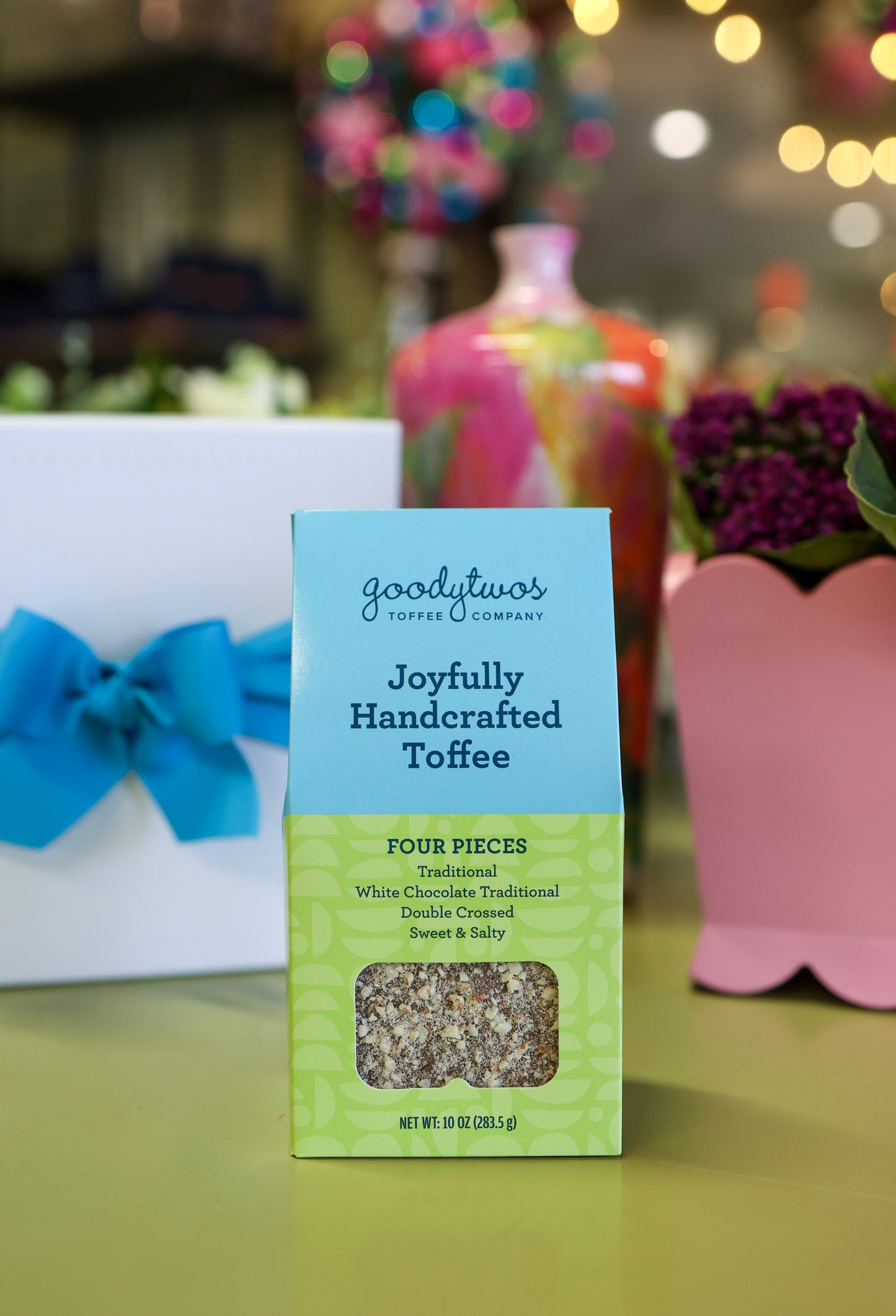 Love this toffee so much! I received a sample from someone and I have been hooked ever since. They have a cute little shop in one of the downtown buildings and then you can find them at the farmers market sometimes. If you have not tried it, you should! It's the best!