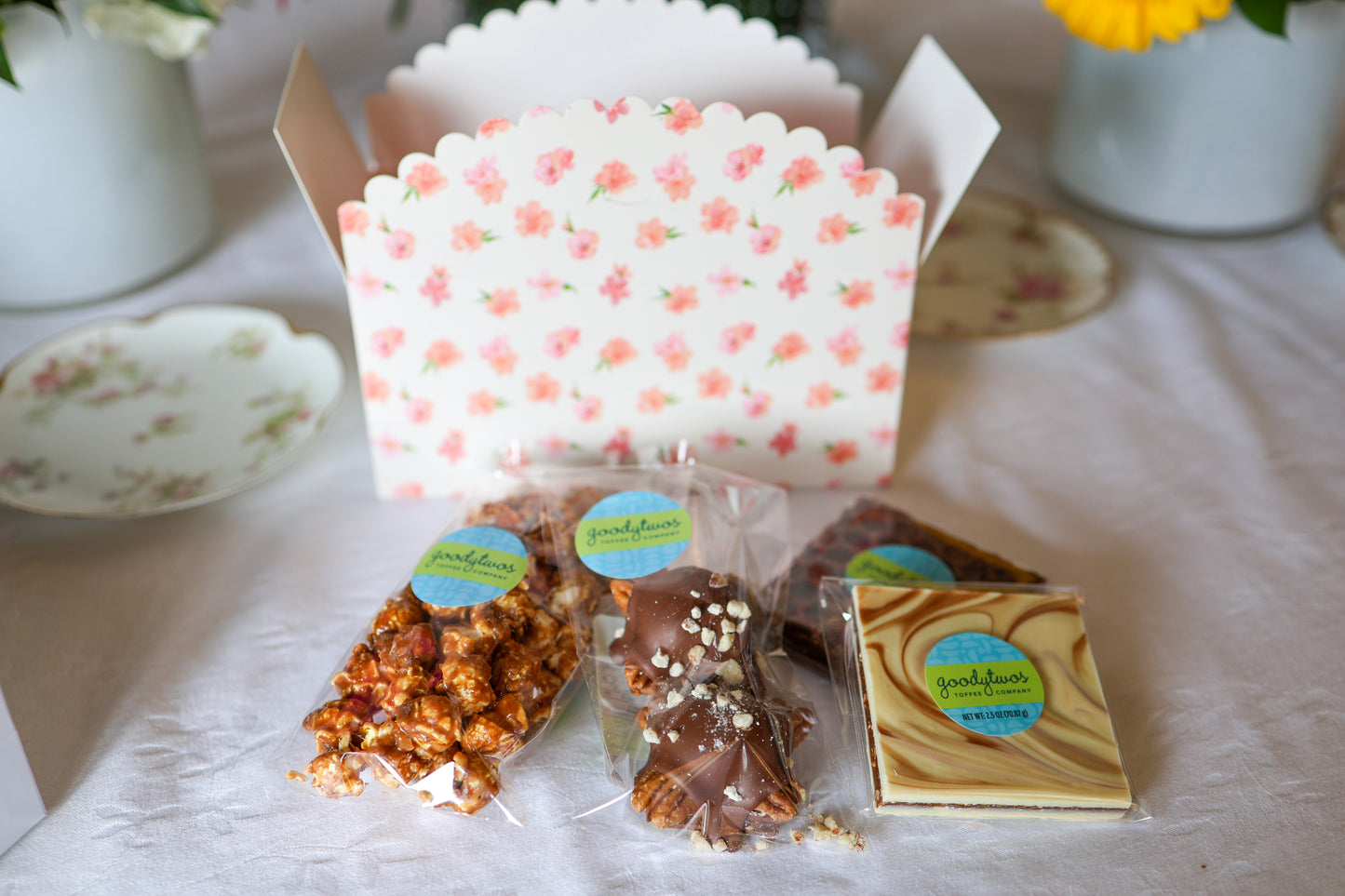 The sweetest way to say thank you — or just because. Two handcrafted toffee squares, two Toffee Turtles, and a mini Toffee Popper sampler, all tucked together in one goodylicious bundle. Pick your flavors. Pick your person (or yourself!) Consider it a goody introduction — though fair warning, it rarely stays that way..